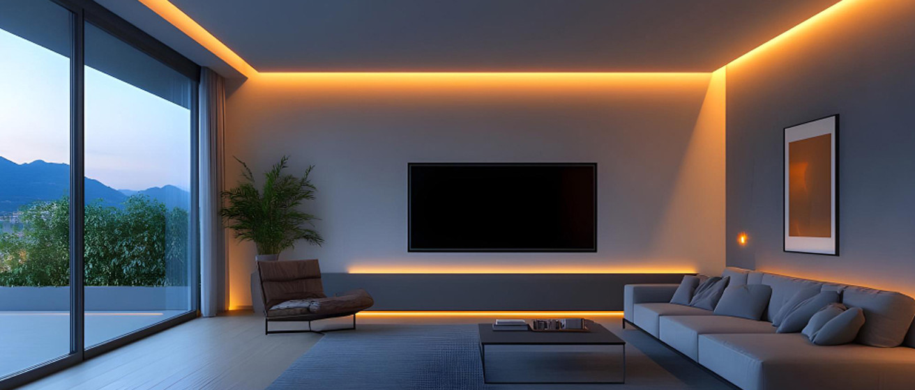 Dekoratīvais apgaismojums padara interjeru dzīvīgu. Tā var būt gan lente aiz televizora vai zem dīvāna, gan ap gleznu un gar kāpnēm. Pat vienkārša balta lente īstajā vietā spēj pilnībā pārveidot telpu.